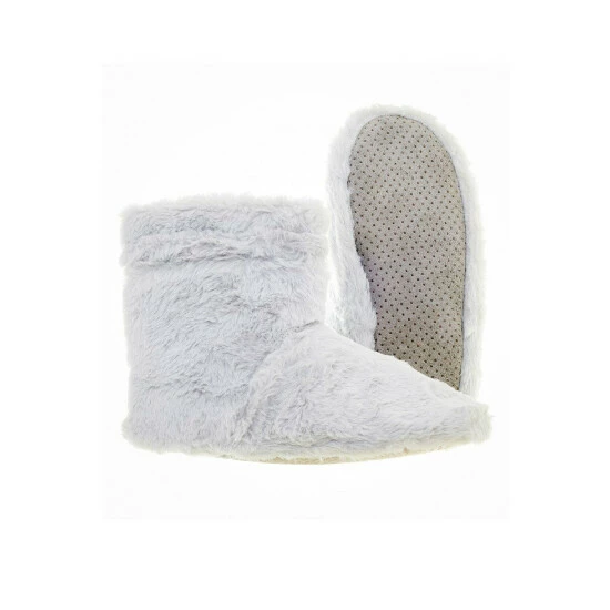 Slip into this comfy pair of Grey Faux Fur Slipper Boots and get your toes feeling nice and toasty. Made from a contempoary teddy boucle each boot contains a removable microwaveable pouch which helps to provide warming relief for tired feet. Designed for indoor wear only, the boots are fragranced with lavender for an enhanced ambience of rest and relaxation, giving you the perfect excuse to put your feet up. Fits most feet up to women’s UK size 6.