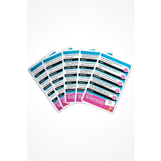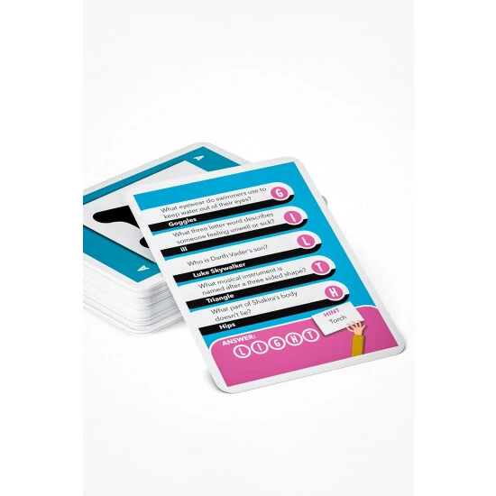 A quick-fire quiz with a wordy twist! Five simple questions stand between you and victory but it’s only the first letter of your answers that really matter – because, when all five are unscrambled, they spell out a word. Will you be the first player to work it out? Includes over 500 questions. 3-10 players, ages 12+. Each game approx 30 mins to play.