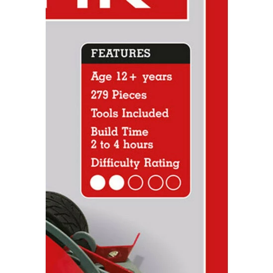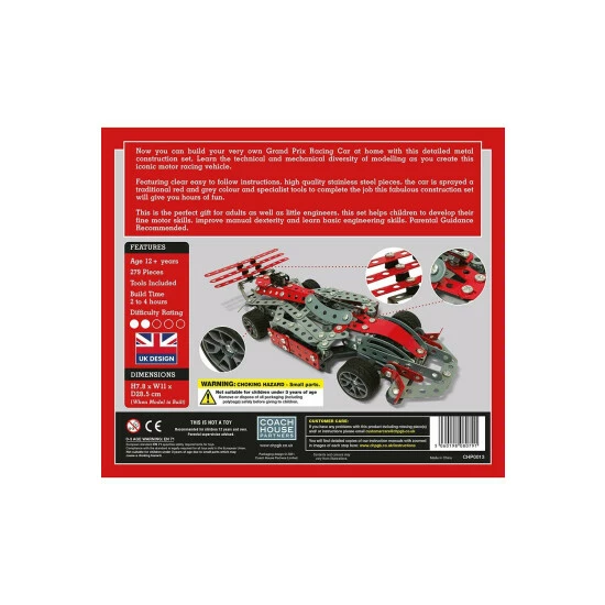 Contains 279 metal pieces and all the tools you need. For ages 12+. Build time: 2 to 4 hours. Dimensions when built: 7.8 cm × 11.0 cm × 28.5 cm