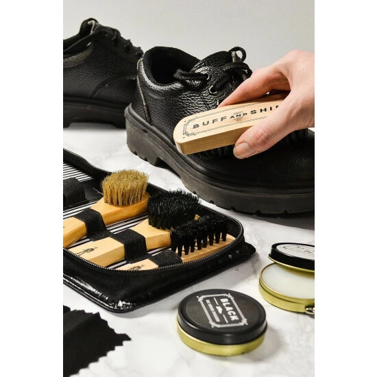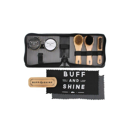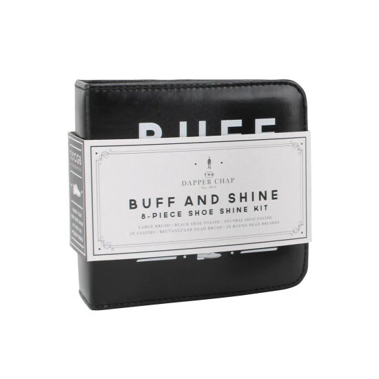 Get spiffed up for that special event in your life with the Dapper Chap Shoe Shine Kit. Use this kit to polish and buff your shoes and make them the talk of the town when you jazz up the dance floor or sparkle on your date. This trendy kit comes in a faux leather travel case, so you can take it with you anywhere. Show your sophisticated, modern gentlemanly side with this unique, vintage shoe shine kit. An ideal gift for any man who likes to dress up and glisten for special occasions.