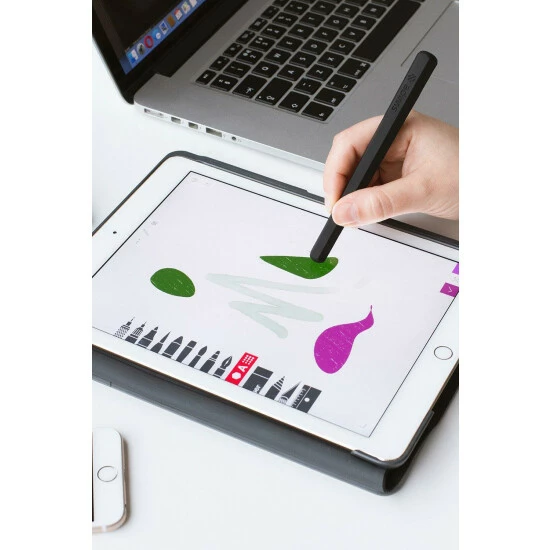 Stylus pen for cooking. Toss in the dishwasher. Compatible with most phones and smaller tablets. Dimensions: 1.42 cm x 1.42 cm x 14.1 cm