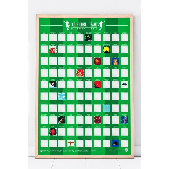Discover, watch and enjoy one hundred of the best football teams in the U.K. This incredible list take you to new stadiums, discover new players and learn about the beautiful Game! iconic illustrations are revealed as the list is ticked off. Premium quality – high quality scratch film printed on high quality poster paper. A2 poster Size. Unique pyramid shaped packaging ideal for gift wrapping