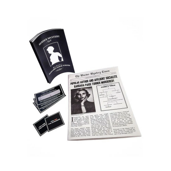 This game is suitable for ages 14 + years. Contents: Newspaper, containing plots and recipes, 10 x character booklets, 10 x murder cards, 2 x sheets of name stickers. Dimensions 9.5 x 25.5 x 9.5 cm
