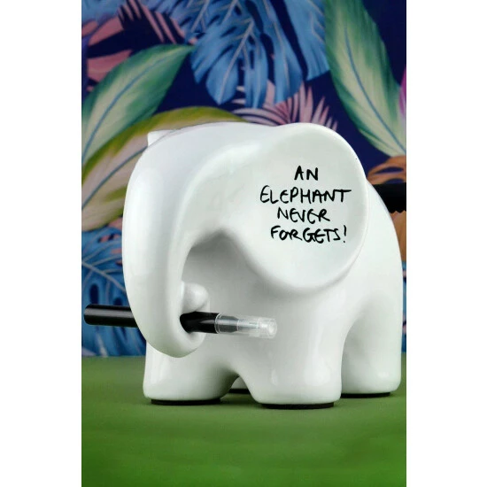 Never forget a single note again with Eric the Memo Elephant! Throw away your sticky notes. Delete the memo pad on your smartphone and make way for the elephant. This white ceramic notepad is a great addition to any office area or home space. Make your notes right on the elephant with a whiteboard marker, and check them off when done! Use the cloth to erase and start over again. The elephant is non-slip and will stay put wherever you place it. This playful elephant is an adorable gift for co-workers, teachers, or friends.