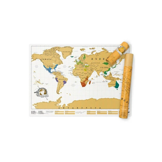 Includes space for notes on your favourite places. White map with gold foil and vibrant colours when scratched. Comes in a protective tube. Dimensions: 42 cm × 29.7 cm