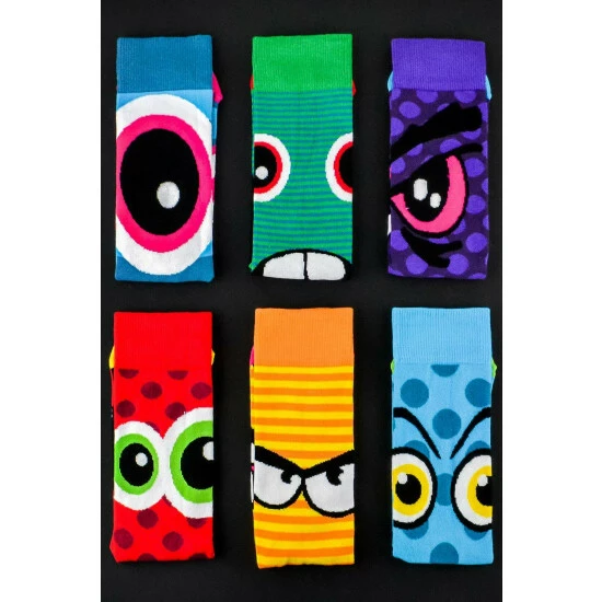 Contains 6 bright, colourful men’s socks. Fits men’s UK sizes 6–11. Showcased in a wacky fun gift box