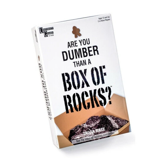 Contents: 1 x Game Box, 3 x Rocks: 2 Numbered & 1 Blank, 1 x Wooden Human Play piece, 1 x Score Card, 100 Question Cards with 300 Questions, Rules. Dimensions 13 x 20.5 x 5.3 cm